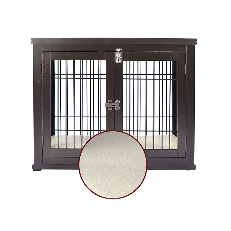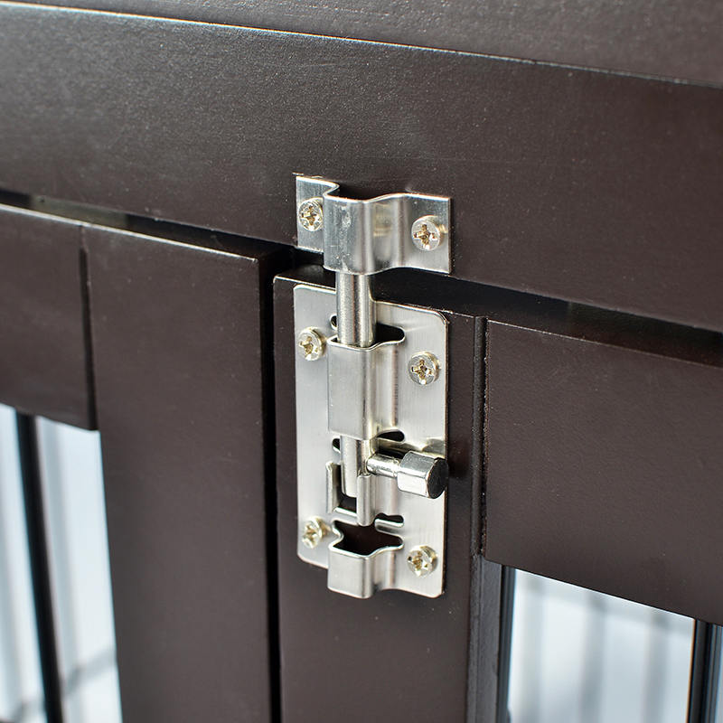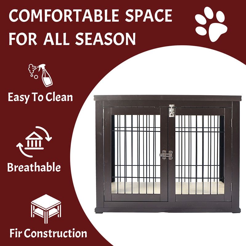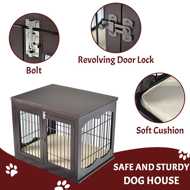 1. Veilig en zorgeloos ontwerp: meubelstijl Dog Cage Geselecteerd van hoge kwaliteit hout en koolstofarme staaldraad, met dubbele beveiligingsdeursloten, allround bescherming van de veiligheid van huisdieren.